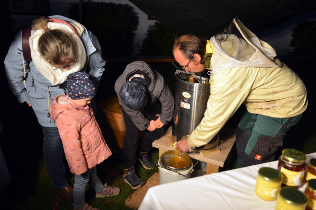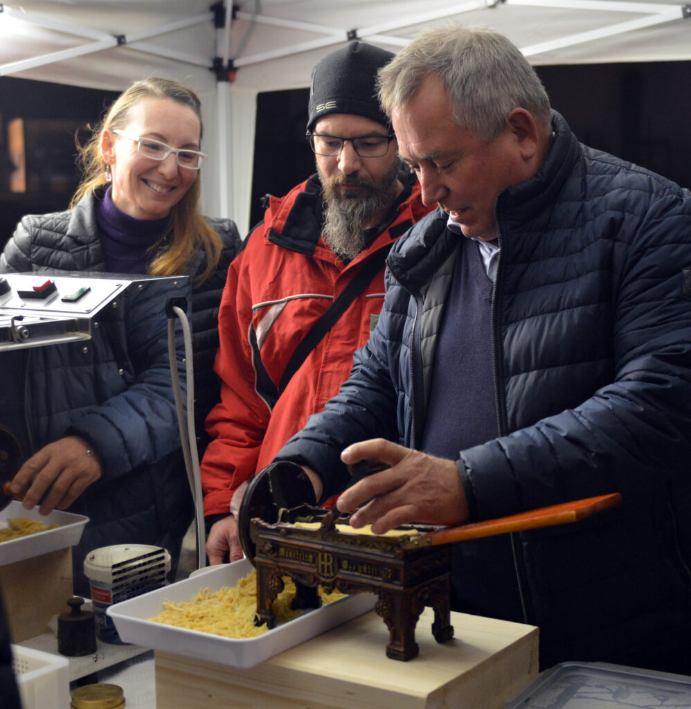 Ganz besonders interessant waren die Vorführungen bis 22:00 Uhr. Neu dabei war die Familie Oberger, die Nudeln mit einer alten Maschine aus dem Museum herstellte. Der Imker Andreas Schatzer erklärte den Weg vom Bienenstock zum Honig. Wie auch in den letzten Jahren gab es Gelegenheit, die textile Handwerkskunst (Spinnen und Weben) mit Eleonore Karner, das Waschen und Bügeln ohne Strom mit Waschrumpel, handbetriebener Waschmaschine und Bügeleisen mit Christine Kienast und Elisabeth Pichler sowie das Arbeiten auf der Hoanzlbank mit Franz Neubauer kennenzulernen. Außerdem wurde wieder der im Museum befindliche Oldtimertraktor von Franz Pichler gestartet. Kinder und Erwachsene hatten die Möglichkeit, mit Originalmuseumsgegenständen zu arbeiten. Die Besucher konnten sich mit bäuerlichen Brotaufstrichen, Spritzer, Sturm und Traubensaft stärken. Das Museum erwachte in dieser Nacht zum Leben. Ein großes Dankeschön allen Mitwirkenden und Besuchern.